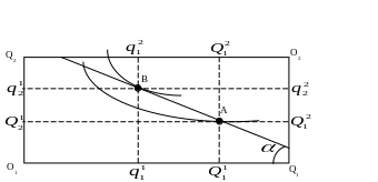 ассмотрим процесс торговли. Торговля – сделка между участниками системы, эквивалентная по стоимости. Рассмотрим экономику, состоящую из двух участников и двух товаров. Точка А – начальная. Цены известны.