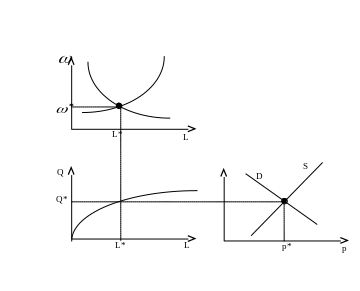 Предполагается, что в экономике существует общий фонд ограниченных ресурсов. Они все принадлежат потребителям на правах частной собственности и служат для извлечения факторных доходов. Они являются многоцелевыми источниками всякого производства и фирмы конкурируют за наиболее эффективные факторы производства. Для каждого из факторов определяется отраслевой рынок, например рынок рабочей силы. Таким образом, устанавливается равновесие на каждом рынке факторов производства.