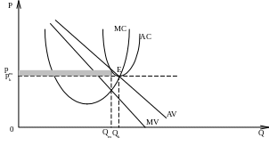 Предположим, что мы рассматриваем теперь не фирму, а всю отрасль, поэтому QK – суммарный выпуск всей отрасли в условиях конкуренции. АС и МС – усредненные отраслевые издержки. Все фирмы, существующие в данной отрасли, объединились в картель. В этом случае объединенный монополист получает власть над рынком и, следовательно, он выбирает другую комбинацию «цена–рынок», отличную от конкурентной. Он должен уменьшить предложение, чтобы увеличить цену.