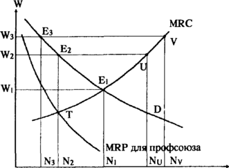 Кривые спроса на труд и кривые его предложения для совершенно конкурентного рынка труда воспроизведены с рис. Заметим, что в условиях монополизации рынка 1 руда профсоюзом кривая MRC перестает быть кривой предложения труда (у монополии чет кривой предложения).