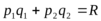 . Запишем условие полного расходования бюджета потребителя. Пусть потребитель приобрел набор q1 и q2.