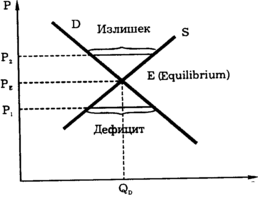 Дефицит и излишки. Тем не менее потребители далеко не всегда полагают, что существующие цены оптимальны. Дело в том, что несовершенство общественной структуры производства на поверхности выступает как несовершенство системы цен. Общественное недовольство существующими равновесными ценами образует плодотворную почву для государственного вмешательства в рыночное ценообразование.