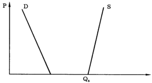 Во втором случае максимальный объем спроса ниже минимально допустимого объема предложения. Объем спроса настолько мал, что производителям невыгодно поставлять товар в столь микроскопических количествах.