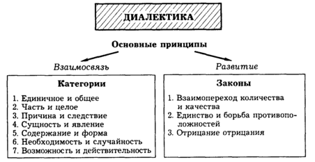 Диалектика — это наука о наиболее общих законах развития природы, общества и человеческого мышления. Она является целостным методом, органической системой категорий и законов. Основными принципами систематизации понятий стали принципы взаимосвязи и развития (см. рис. 1.7).