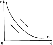 Изображенная кривая характеризует состояние цен и объема покупок продукции Х в определенный момент времени (например, на 1 января 2000 г.). Она имеет отрицательный наклон, что свидетельствует о желании потребителей купить большее количество благ при меньшей цене.
