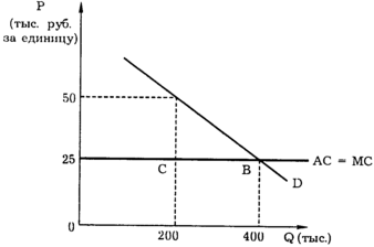 Допустим, что каждая из фирм А и Б производит половину продукции, общая величина которой 400 тыс. единиц, и что средние издержки постоянны и равны 25 тыс. руб. Допустим также, что первоначальные цены равны и составляют 50 тыс. рублей. Если фирмы считают, что снижение цен поможет им вытеснить конкурента с рынка, то между ними начинается ценовая война.