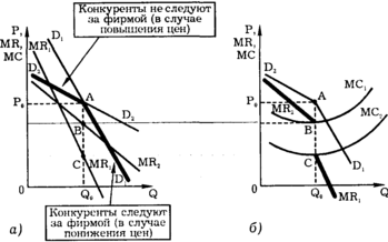 Предложенная модель объясняет относительную негибкость цен при олигополии. Дело в том, что в известных пределах любое повышение цен ухудшает ситуацию. Повышение цены одной фирмой таит опасность захвата рынка конкурентами, которые могут переманить прежних покупателей фирмы, сохраняя низкие цены.
