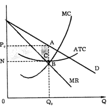 Проекция этой точки на кривую D, т. е. точка А (рис. 9.10), позволяет определить монопольную цену Р0 и экономическую прибыль (площадь P0ACN).
