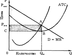 Так как цена и предельный доход равны для любой единицы продукции, то кривая предельного дохода совпадет с кривой спроса. Поэтому монополист, практикующий дискриминацию, получит не только прибыль, обычную для монополиста (АВСРмон), но и дополнительную прибыль РмонАРmax.