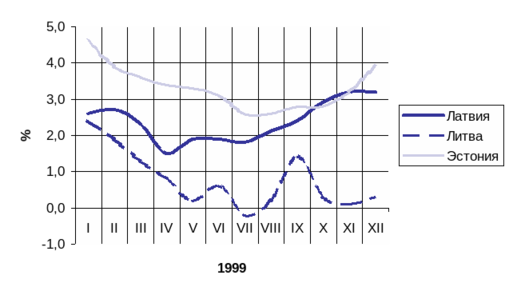 Таблица 4 Изменения индекса потребительских цен в странах Балтии в 1999 г.