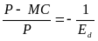 Данная формула представляет собой правило "большого пальца" для ценообразования. Также вытекающее отсюда выражение E = (Pm - MC) / Pm называется индексом Лернера. Левая часть уравнения (P - MC)/P выражает превышение цены над предельными издержками как процент от цены. Уравнение показывает, что данное превышение равняется величине, обратной эластичности спроса, взятой с отрицательным знаком. Точно так же мы можем переписать это уравнение, чтобы выразить цену через предельные издержки:
