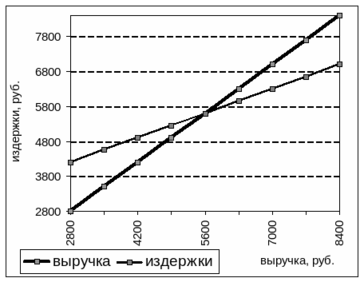 Прибыль в зависимости от выручки и издержек, точка безубыточности