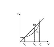 Любой объем производства от Q1 до Q2 принесет фирме прибыль, однако лишь в точке Q0 эта прибыль будет максимальной. Именно при Q0 предельный доход будет равен предельным издержкам.