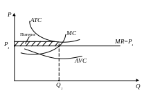 Рис. 6. Минимизация убытков фирмой в условиях совершенной конкуренции.