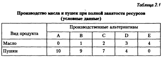 Итак, редкость ресурсов означает ограниченность выпуска или производственных возможностей, т.е. вы каждый данный момент можно производить лишь вполне определенное количество того или иного товара или услуги и не более (таб.2.1)