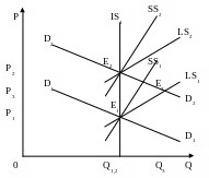 Рассмотрим теперь возможность изъятия государством с помощью потоварного налога так называемого «незаработанного дохода», который может возникнуть у предприятий в результате благоприятной рыночной конъюнктуры. На рисунке 9 D1D1 – первоначальное положение линии спроса, IS1, SS1, LS1 - линии предложения в мгновенном, коротком и длительном периодах. Первоначальное равновесие характеризуется равновесны объемом рынка Q1 и равновесной ценой Р1.