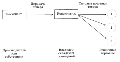 Рисунок 4 Схема отношений производителя и потребителя с участием консигнатора (посредника)