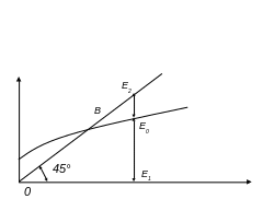 Построим график, отражающий предельную склонность к потреблению. На оси абсцисс откладывается чистый доход (после уплаты налогов). На оси ординат — расходы на потребление. Если бы расходы в точности соответствовали доходам, то это отражала бы любая точка, лежащая на прямой, проведенной под углом 45°. Но в действительности такого совпадения не происходит, и только часть доходов расходуется на потребление.