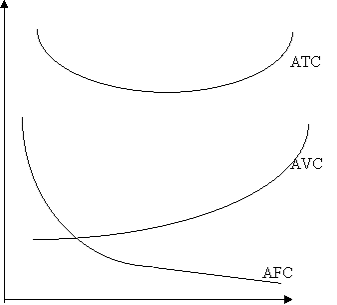 Графически средние издержки изображаются суммированием кривых средних постоянных и средних переменных издержек и имеют U-образную форму.(рис)
