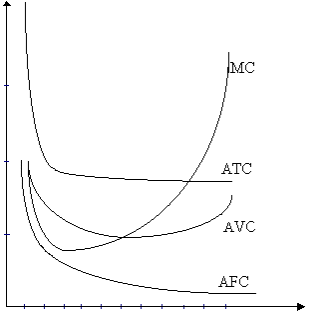 Когда МС становятся больше АС, кривая средних издержек идет вверх, что означает увеличение средних издержек в производства дополнительной единицы продукции.