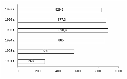 ис. 1. Динамика численности малых предприятий в РФ в 1991 —1997 гг., тыс.
