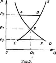 Таким образом, конкуренция и колебания спроса и предложения привели к установлению равновесия на рынке. Ограниченное количество имеющегося в обществе данного товара распределено между возможными его потребителями. Но это лишь частичное равновесие на единичном рынке. Надо учитывать, что цены на рынке находятся в постоянном движении вследствие изменений в предложении или спросе товаров. Эти изменения не являются независимыми друг от друга, а, напротив, все взаимосвязаны. Каждое изменение цены одного товара приводит к изменениям в цене других товаров. Существует целая система цен, которая может оказаться в равновесии, если рассматривать ее в определенный момент и одновременно в ее совокупности. В этом случае говорят об общем равновесии рынка. В точке равновесия экономическое движение прекращается. Для того, чтобы оно началось вновь, должны измениться внешние условия — уровень цен, технология, ожидания и предпочтения производителей или потребителей. Конечно, равенство спроса и предложения — это теоретическая абстракция, ибо в реальной хозяйственной практике такое совпадение бывает весьма редким. Однако именно эта абстракция позволяет выявить наиболее важные закономерности функционирования рыночного механизма.
