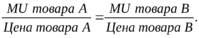 где MU – предельная полезность отдельных товаров, а P – их цена.