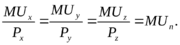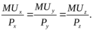 Введем обозначения: цены товаров – Рx, Рy, Pz; предельные полезности товаров – MUx, МUy, МUz.