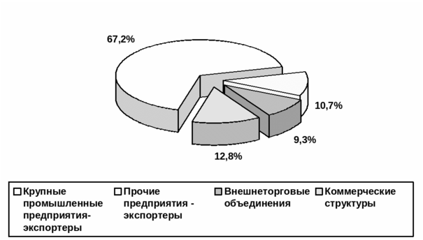 Рис.1. Экспортеры РФ в 1994 году (% к общему итогу)