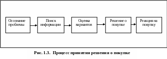 Теперь необходимо рассмотреть этапы, которые покупатель преодолевает на пути к принятию решения о покупке и ее совершению. На рис. 10 представлены пять этапов, через которые проходит потребитель. Из этой модели следует, что процесс покупки начинается задолго до совершения акта купли-продажи, а ее последствия проявляются в течение долго времени после совершения этого акта.