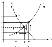 Коэффициент (вывести из формулы) характеризует угол наклона кривой IS относительно оси Y, который является одним из параметров сравнительной эффективности фискальной и монетарной политики.