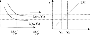 Кривая LM- это геометрическое место точек, где спрос на ликвидные активы(L) равен предложению денег М: