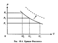 Был сделан вывод о том, что с безработицей можно бороться путем инфляционного роста номинальной зарплаты. В дальнейшем в графике Филлипса американские экономисты П.Самуэльсон и Р.Солоу заменили ставки зарплаты на темпы прироста цен. Модернизированная кривая Филлипса показана на рис. На оси абсцисс откладывается уровень безработицы U\, на оси ординат — уровень цен Р\. Если правительство рассматривает уровень безработицы как очень высокий, то оно проводит фискальную и бюджетно-денежную политику, стимулирующую совокупный спрос. Необходимость удовлетворения выросшего спроса ведет к расширению производства и созданию новых рабочих мест, безработица снижается до уровня С/2, но инфляция растет до Pi- Для борьбы с инфляцией правительство проводит антиинфляционную политику. В результате цены снижаются до уровня Рз, а безработица увеличивается до уровня С/з. Кривая Филлипса "работает" только в краткосрочном периоде. Если же инфляция продолжается более длительное время, например свыше 5 лет, она может расти, несмотря на высокий уровень безработицы. Это объясняется рядом факторов, среди которых важное место занимает политика ложных ожиданий населения. Так, стремясь увеличить совокупный спрос, правительство стимулирует рост зарплаты, на что рынок труда реагирует увеличением предложения труда. Рост зарплаты стимулирует инфляционный прирост цен. В соответствии с концепцией Филлипса инфляция в определенный промежуток времени снижает безработицу. Однако ожидания повышения зарплаты и связанный с ними рост благосостояния со временем ослабевают, так как инфляция съедает прирост номинальной зарплаты. Поэтому предложения труда и соответственно занятость снижаются. Графически стагфляцию можно изобразить как сдвиг кривой Филлипса вправо. Сейчас для более длительных периодов времени вместо кривой Филлипса используется теория естественного уровня безработицы, согласно которой поддерживать умереные темпы инфляции в течение относительно длительной периода времени можно только при естественном уровн безработицы.
