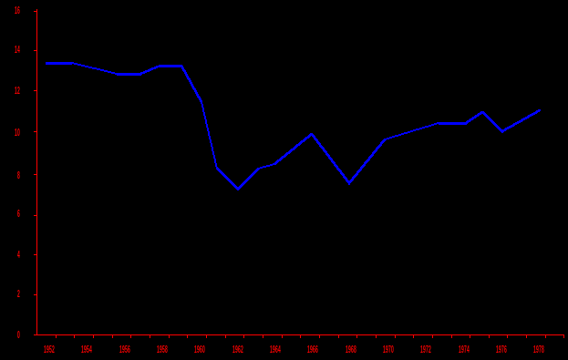 | 1952 | 1961 | 1970 | 1976 | 1980 | 1985 | 1990 | 1996 | |