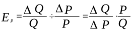 Если обозначить цену Р, а величину спроса Q, то показатель (коэффициент) ценовой эластичности спроса Ер равен: