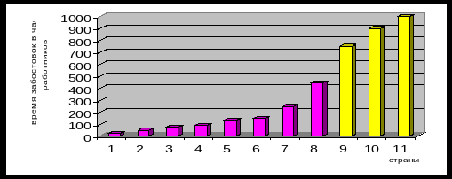 изнь показывает: чем богаче страна, чем выше в ней уровень благосостояния, тем спокойнее строятся отношения на рынке труда, тем реже и короче забастовки. Это хорошо показывает график.