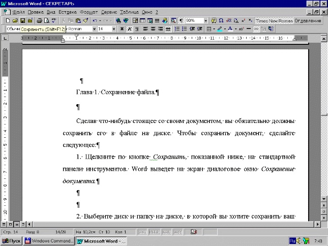 Сделав что-нибудь стоящее со своим документом, вы обязательно должны сохранить его в файле на диске. Чтобы сохранить документ, сделайте следующее: