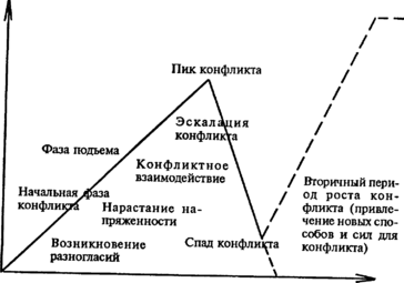 2) эскалация конфликта (т.е. конфликт становится независимым от исходных причин и, даже если причины конфликта устранены, сам конфликт продолжается);