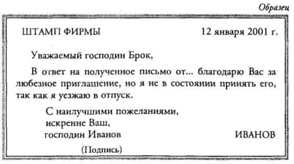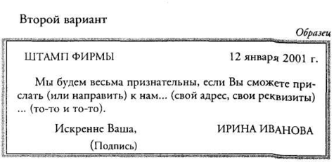 Следует обратить внимание, что указанный выше вариант делового письма является наиболее распространенным, однако не единственным. Возможны и другие варианты.