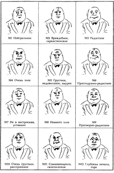 Из нарисованных в таблице лиц, по которым можно "прочесть" определенное чувство или состояние души, более всего подходят для создания благоприятного впечатления на окружающих лица под № 3 и № 6, поскольку на них запечатлена улыбка.