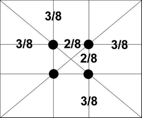 Ще в епоху Відродження художники відкрили, що будь-яка картина має певні крапки, що мимовільно приковують нашу увагу, так звані зорові центри. При цьому абсолютно неважливо, який формат має картина – т горизонтальний або вертикальний. Таких крапок всього чотири, і розташовані вони на відстані 3/8 і 5/8 від відповідних країв площини.
