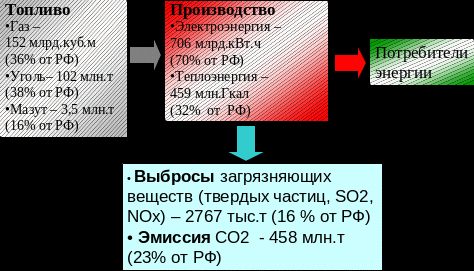 Наличие высокого уровня валовых выбросов вредных веществ в атмосферу (около 16% от общего выбросов стационарными источниками РФ) , сброса загрязненных сточных вод (более 3%), накопление в золоотвалах более 1,0 млрд.т ЗШО.