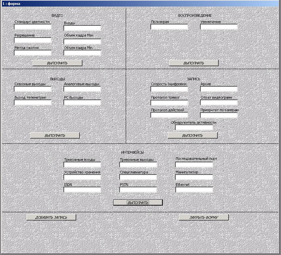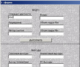 Проведем поиск записей в группе ВИДЕО по стандарту цветности (в современных системах видеонаблюдения используется два стандарта цветности видеосигнала PAL и NTSC). Если не вводить никакой информации в поле стандарт цветности и нажать кнопку выполнить будут выведены все записи базы данных «VIDEO» касающиеся группы ВИДЕО.