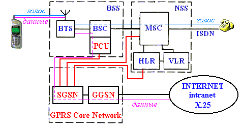 Ядро системы GPRS (GPRS Core Network) состоит из двух основных блоков - SGSN (Serving GPRS Support Node - узел поддержки GPRS) и GGPRS (Gateway GPRS Support Node - шлюзовой узел GPRS).