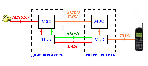 MSC пересылает в HLR номер (MSISDN) абонента. HLR, в свою очередь, обращается с запросом к VLR гостевой сети, в которой находится абонент. VLR выделяет один из имеющихся в ее распоряжении MSRN (Mobile Station Roaming Number - номер "блуждающей" мобильной станции). HLR домашней сети получает от VLR присвоенный абоненту MSRN и, сопроводив его IMSI пользователя, передает коммутатору домашней сети. Заключительной стадией установления соединения является направление вызова, сопровождаемого IMSI и MSRN, коммутатору гостевой сети, который формирует специальный сигнал, передаваемый по PAGCH (PAGer CHannel - канал вызова) по всей LA, где находится абонент.