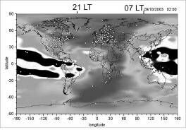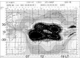 Илл.2. По данным просвечивания в 2003 г. границы «провала» приблизились к экватору до 15 градусов (за 24 года – в два раза), зеркало F2 появилось на экваторе.