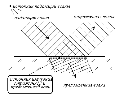 С этой точки зрения любой заряд или материальное тело становится источником вторичного излучения. Для отраженной и преломленной волн независимо от движения первичного источника точка отражения в среде является источником вторичного излучения. С ней связана базовая система отсчета вторичных волн.