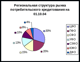 Рисунок 2.1. – Региональная структура рынка потребительского кредитования на 01.10.04