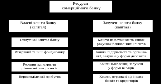 На рис. 3 подано класифікацію ресурсів комерційного банку залежно від джерел їх утворення.