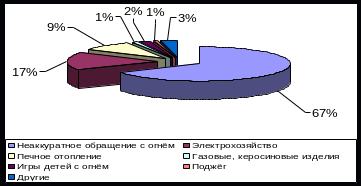 Как видно из приведенных данных УкрНИИПБ ГУ МЧС Украины, основными причинами возникновения пожаров является: небрежное поведение с огнём, нарушение пожарной безопасности при эксплуатации электрооборудования, несоблюдение технологии при ведении огневых работ.